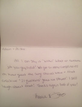 "Adam and Alisha were awesome! I definitely recommend them for any occasion, especially if you want to have a good time! They definitely know how to work the crowds! Thanks again! You were great!"
